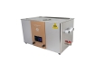 通過換能器,將功率超聲頻源的聲能轉換成機械振動,通過清洗槽壁將超聲波輻射到槽子中的清洗液。由于受到超聲波的輻射,槽內液體中的微氣泡能夠在聲波的作用下快速變大破裂,破裂時產(chǎn)生的高強度剪切力作用于各類樣品上,從而達到清洗、提取、乳化、加速溶解、粉碎、分散等作用。